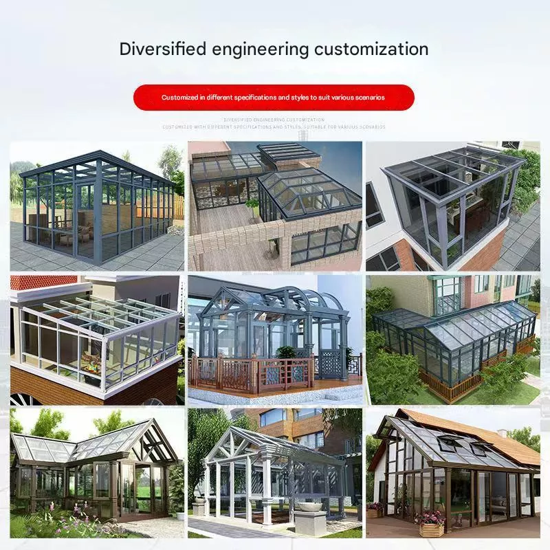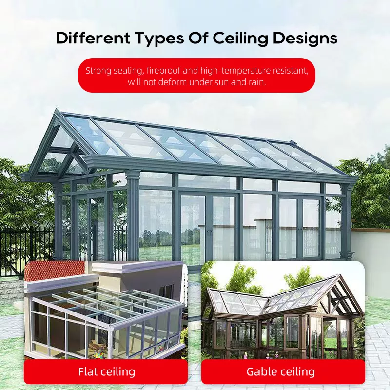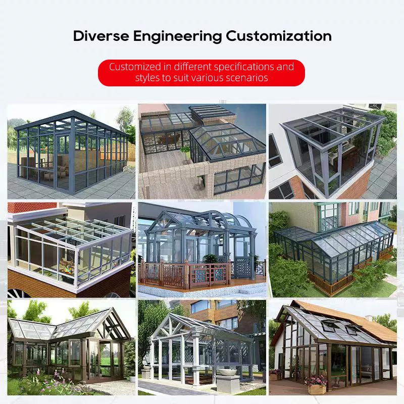 Personalización flexible: los estilos, tamaños, colores, tipos de vidrio y accesorios del techo se pueden personalizar